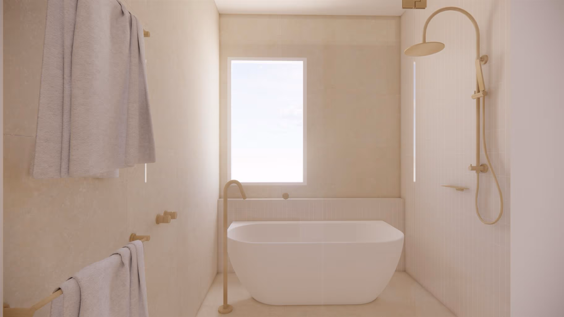 3D Render — Bathroom with Floating Vanity & Wall Hooks